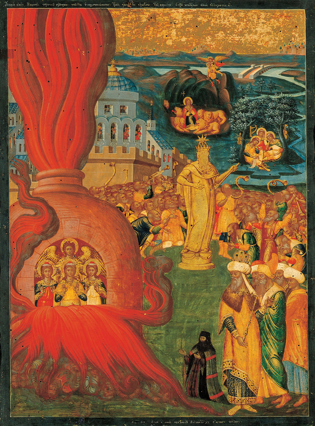 King Nebuchadnezzar is the figure who shows us slavery to sin but he is also the one who points out the state of being freed from sin and blessed by God. In today’s reading, he makes another notable comment. Upon seeing figures still standing in the furnace, he exclaims, “I see four men unfettered and unhurt, walking in the fire, and the fourth looks like a son of God.” This clear choice of words, לְבַר־ אֱלָהִֽין׃ (bar-Elahim), when read with the full view of salvation history provided by Jesus Christ, is a reminder that when we are blessed with eternal life, we live with the Son of God. Elsewhere, this figure is identified as an angel of God, but here, viewed through the white-hot fire intended to purify — the trial by fire that these young men have survived — this salvific figure is seen as the Son of God.