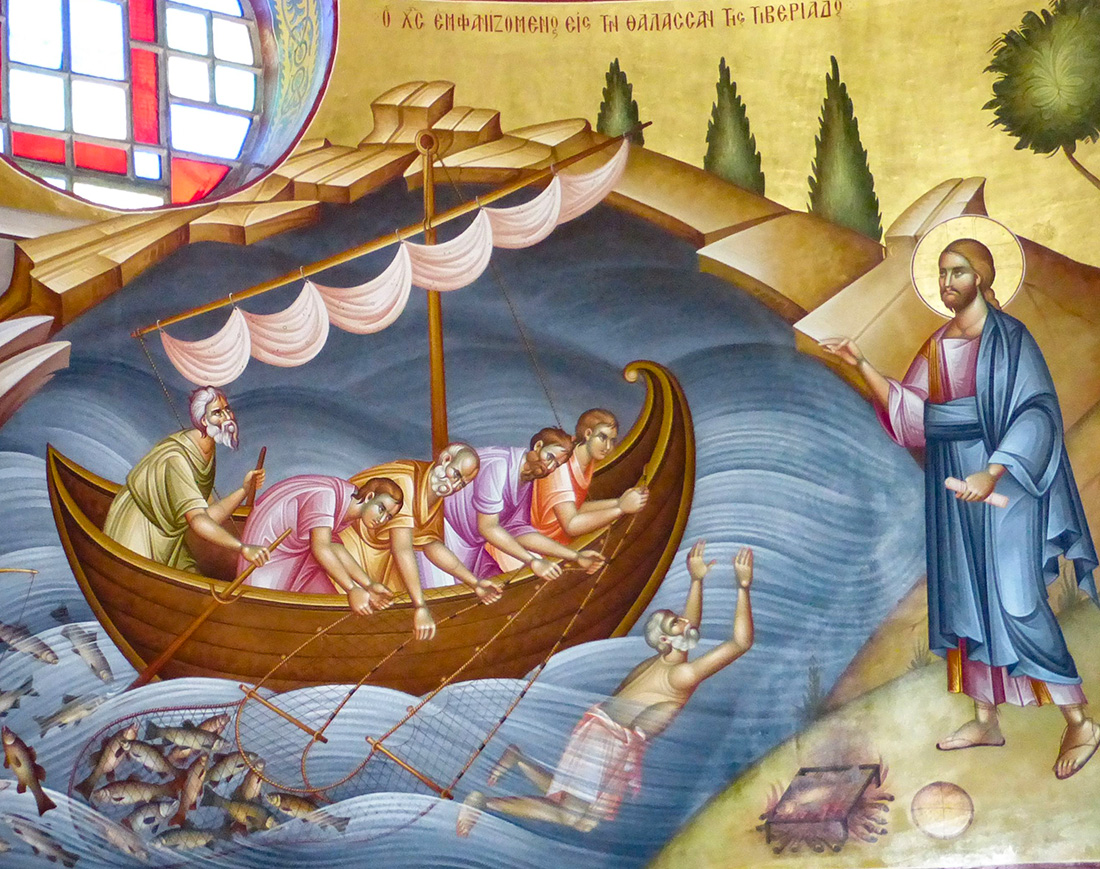 But, as Pope Francis notes, “it was at the very moment of Peter’s failure that Jesus appears.” They had caught nothing during an entire night of fishing, and there, Jesus on the shore asks them a double-edged question: “Children, have you caught anything to eat?” Of course, the original Greek is a bit more enlightening. Jesus first calls out their immaturity by calling them παιδία (paidia), which is a diminutive form of child, i.e., “little child” (the only time in the New Testament, incidentally, that Jesus calls his apostles paidia). He then asks if they hadn’t any προσφάγιον (prosphagion), which is properly translated as “anything eaten with bread” (Thayer’s Greek Lexicon). What is He saying here? Clearly, there’s the literal meaning “haven’t you caught anything?” but the words He chooses point to something more. He notes that their development as his followers is not yet mature (they are paidia). Case in point, they are looking for something “to eat with bread;” this, coming from the Bread of Life Himself who had just instituted the great sacrament of Eucharist with them. All they need is the bread He gives them, but they don’t yet comprehend the power of His Spirit in the sacrament and in the world.