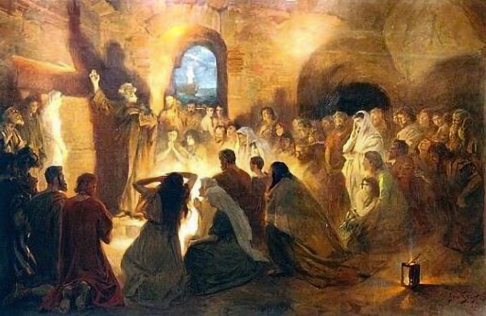 Saint Peter preaching the Gospel in the Catacombs (1902), Jan Styka | Wikimedia Commons.