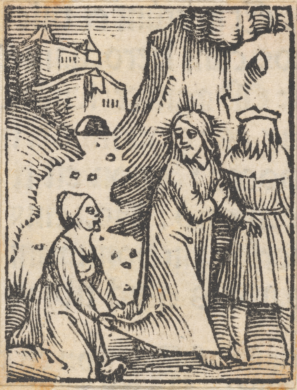 St. Matthew relates her inner thoughts: “If only I can touch his cloak, I shall be cured.” She reaches up and touches the tassel on his garment. The tassels on Jewish clothing were prescribed by God in the Book of Numbers to be worn as a reminder to keep God’s commandments. They serve as a visible locus of the covenant — a reminder that God loves and cares intimately for us and that we are called to maintain our fidelity to Him. The Holy Spirit is guiding her mind and her hand to the tassels on Christ’s garment, the tassels worn by the Living Word and Wisdom of God. They are not only a symbol of fidelity but a symbol of perfected fidelity within the Trinity. What greater object of attention, affection, and caress could we possibly have? All of this in a small, easily overlooked detail of St. Matthew’s gospel.