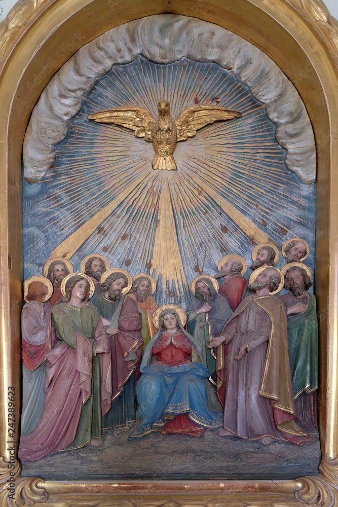 Pentecost, the descent of the Holy Spirit in the chapel in the village Stitar, Croatia. Photo from Adobe Stock.