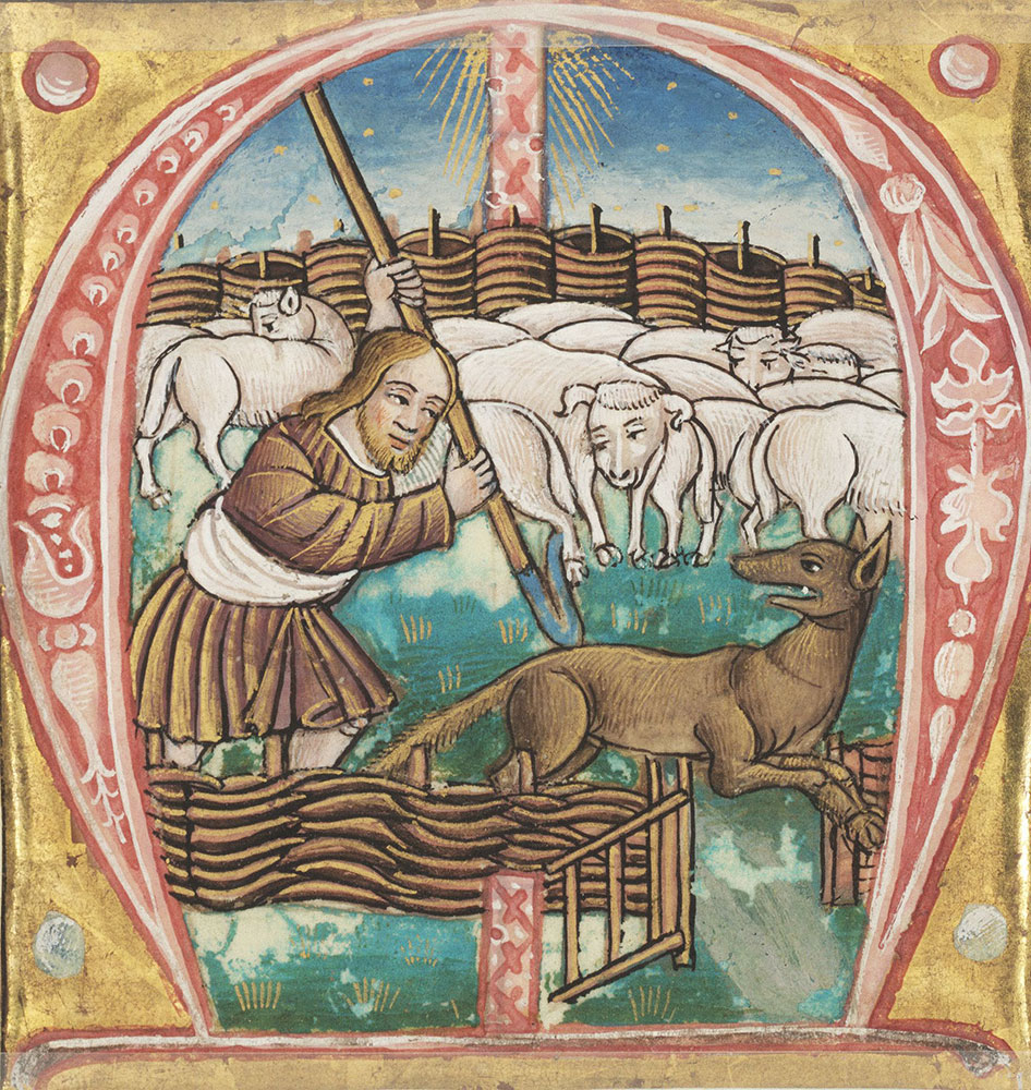 Initial M depicting the parable of the Good Shepherd from a French illustrated manuscript | Creative Commons, courtesy the Free Library of Philadelphia.