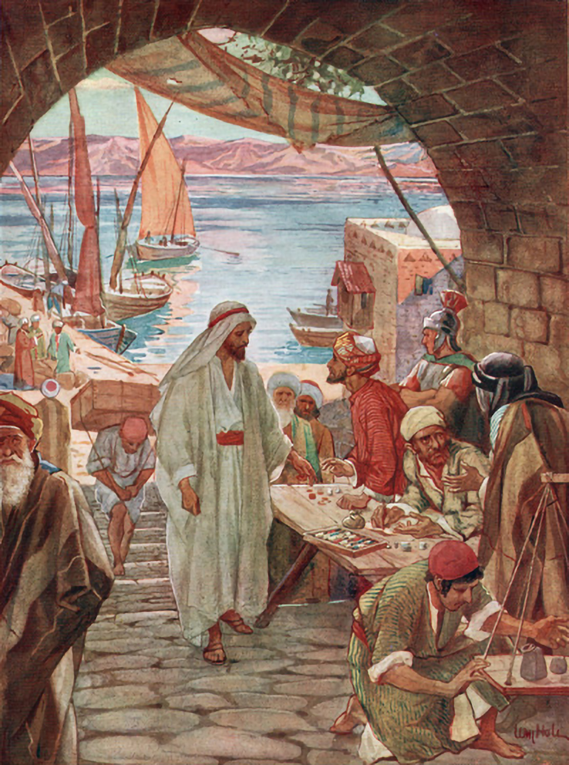 Jesus calls Levi. From the book The Life of Jesus of Nazareth. Eighty Pictures (1906), William Hole | Wikimedia Commons.