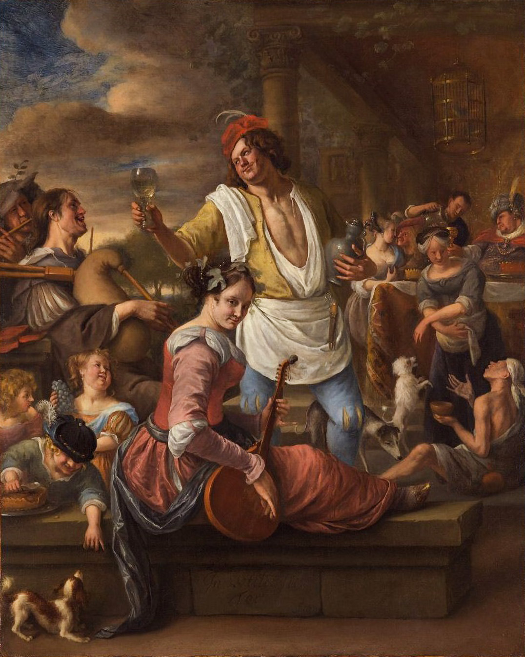The Parable of the Rich Man and Lazarus (1677), Jan Steen | Wikimedia Commons. I particularly like the self-important, dismissive expression of the man holding the goblet in the foreground, which captures the failings of the rich man archetype. Note that the actual rich man from the parable, however, seems to be in the upper right corner, even more removed from humanity in his gluttony. Overall, I appreciate Jan Steen’s painting for focusing on the enchantments of the world, raising a glass to toast today’s enjoyments, oblivious to the judgment that is coming.