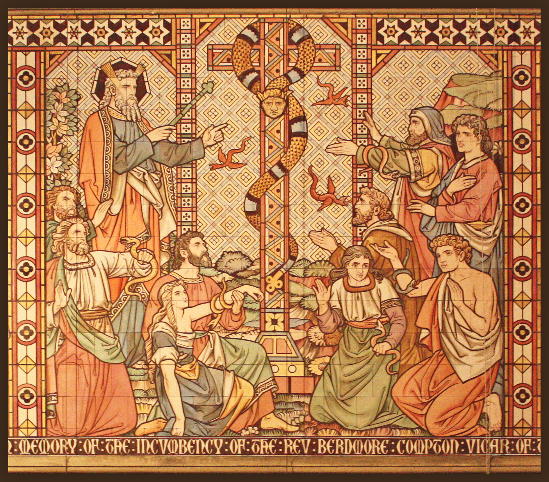 The passage from the Book of Numbers is exceedingly odd at first glance: the Lord punishes the Israelites for complaining by sending poisonous serpents among them; upon their admission of guilt and atonement, Moses prays for deliverance, after which God instructs him to mount a serpent on a pole; subsequently, when the people look up at the serpent on the pole after being bitten, they are spared from death. What kind of witchcraft is going on here? A magic serpent staff to ward off a plague of poisonous snakes?