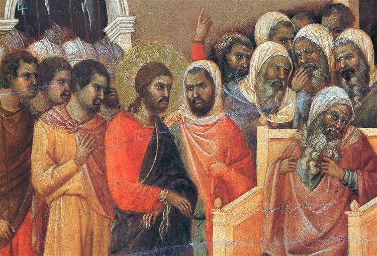 Christ before Caiaphas (1308-1311), Duccio di Buoninsegna | Image from Wikiart.org.