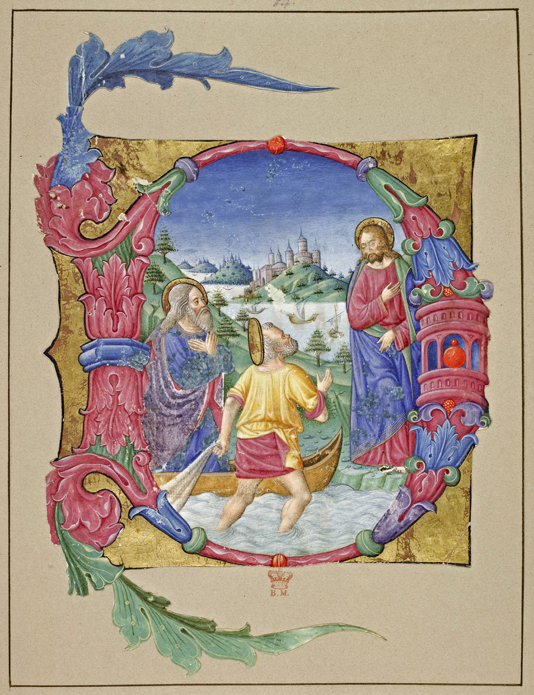 Cutting from an Italian choir book (Lombardy) – Historiated initial ‘D’ of the Calling of Peter and Andrew (c. 1475-1500) | Image Courtesy the British Library Catalogue of Illuminated Manuscripts.